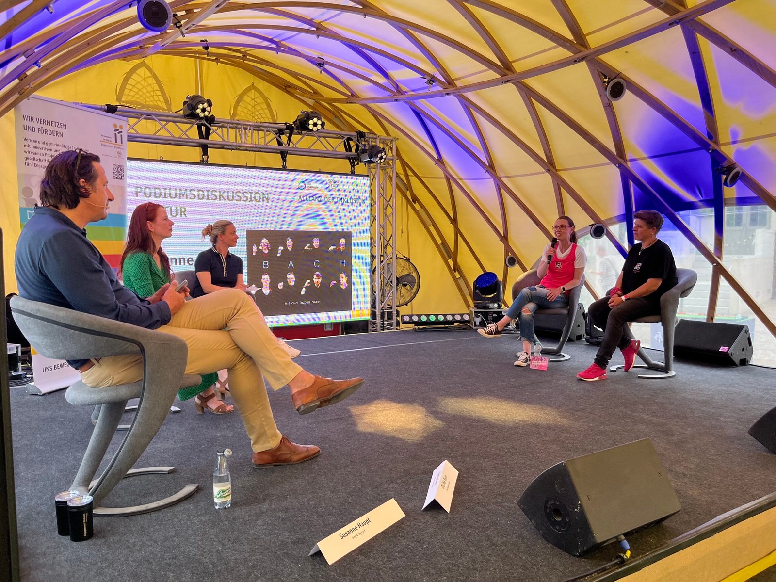Im Bereich Kultur berichtete Susanne Haupt von Sing und Sign e.V. wie musikalische Praxis mit Gebärdensprache verbunden werden kann, damit Gehörlose oder schwer Hörende Musik erleben können. Dörthe Reim und Kati Hahn-Scholz gaben uns Einblicke in die Arbeit des Pink Dragons Leipzig und wie dort Sport und Gemeinschaft als Therapie für erkrankte Frauen ermöglicht wird.